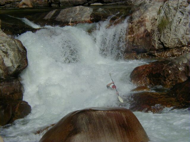 Numerous Class 5 drops in the next 0.3 miles. Scouting is possible on the way to the put-in from a trail off a highway turnout. The Giant Sluice, is one of the bigger drops in this section.