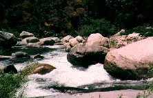 To get to the putin, drive down SCE access road 100 yards before park entrance station on Hwy 198. Cross Bridge and go to parking lot of Power Plant. Unload boats etc. and have someone drive your car to the takout. Do not leave your car here as they may lock the gate behind you. If the gate is closed at Hwy 198 unload here and carry 1/4 mile to putin. There is no parking anywhere near this access road. The few parking spots at the park entrance station are for "park employees and emergency vehicles only". An alternate Put-in is 1/4 mile further upstream at the Indian Head turnout in Sequoia National Park. A short trail drops 100 feet down to the river. This Put-in requires running or portaging the SCE diversion dam 200 yards below the Put-in as well as $20 park entrance fee or $30 for an annual park pass.